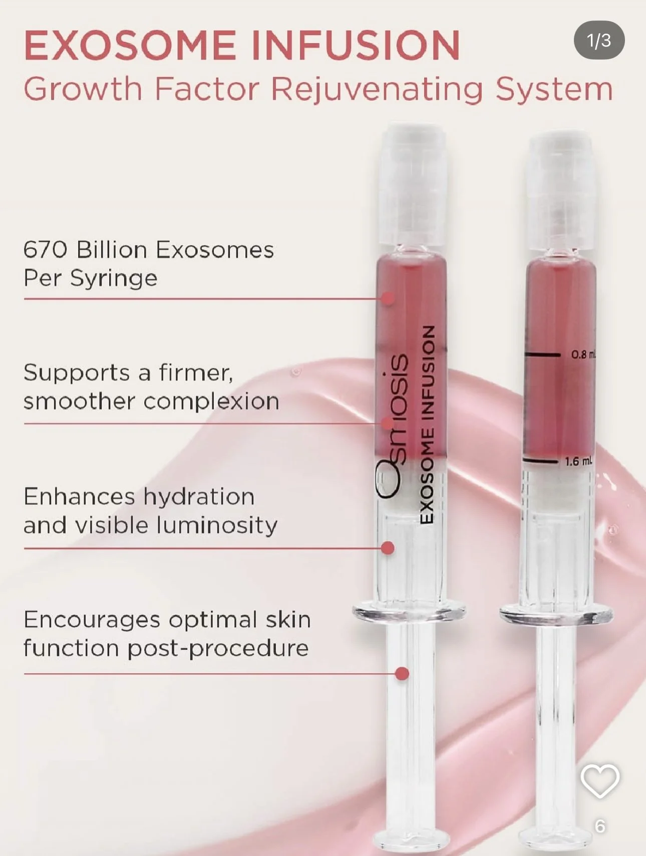 A next-generation infusion that harnesses the power of exosomes. This professional concentrate delivers 670 billion exosomes per syringe along with over 600 growth factors and cytokines. Exosomes are nano-sized carriers that navigate between cells, delivering signals and instructions to help the skin stay balanced and responsive.